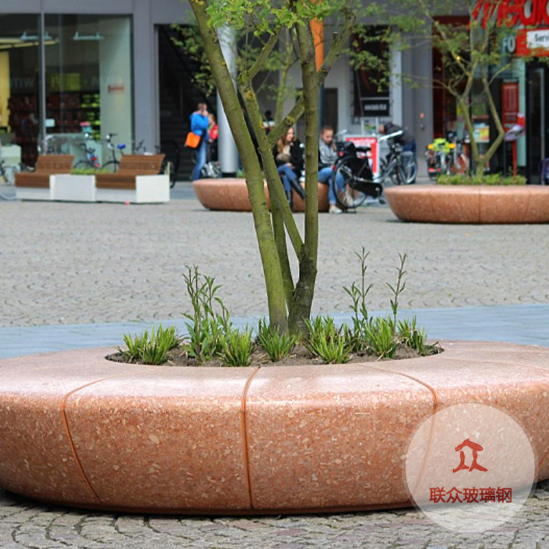 户外玻璃钢树池花坛公园景观防腐木花盆座椅大型创意圆形花池坐凳